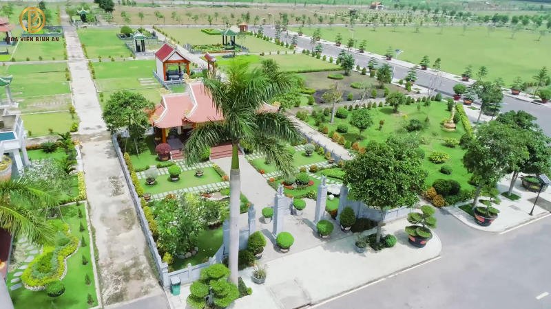 Hoa Viên Bình An là dự án được đầu tư với quy mô diện tích cực lớn lên đến 100 héc ta cùng với đó là phong cảnh thiên nhiên viên mãn. Toàn bộ dự án đầu tư và thiết kế với hơn 50% diện tích là cây xanh, vườn hoa, thảm cỏ trải đều khắp các lối đi. Nằm giữa rừng cây sala đầy quả mọng, bên trong khuôn viên có các vườn tươi đủ màu sắc xen kẽ những đồi cỏ xanh mướt. Tất cả tạo nên một không gian thư thái, an yên cho người đã khuất và nơi nghỉ chân mát mẻ cho người thân đến viếng thăm mộ.