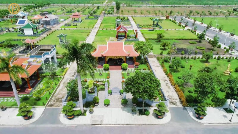 Một hoa viên có khuôn viên rộng lớn sẽ được quy hoạch và xây dựng nhiều công trình kiến trúc tâm linh mãn nhãn như: Tượng Phật, Đền, Chùa, vườn cây, vườn hoa,.... Từ đó mang đến không khí linh thiêng, ấm cúng để an ủi phần nào cho những hương linh yên nghỉ tại đây. Người thân khi đến viếng thăm cũng có thể chiêm ngưỡng được những cảnh sắc, công trình tâm linh tuyệt vời, như vậy cũng đã làm dịu bớt đi sự mất mát đau thương, tâm hồn thư thái hơn.