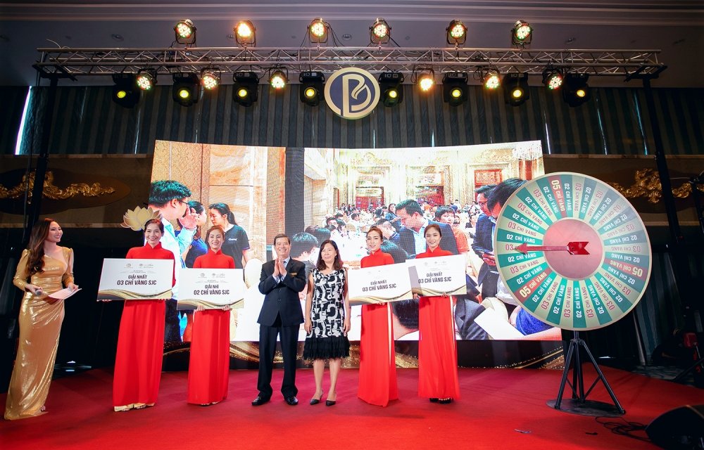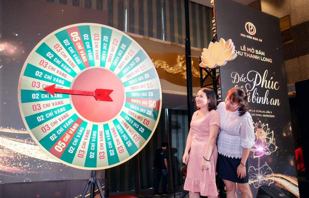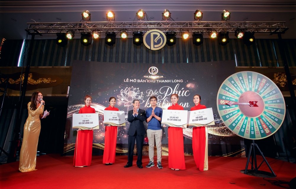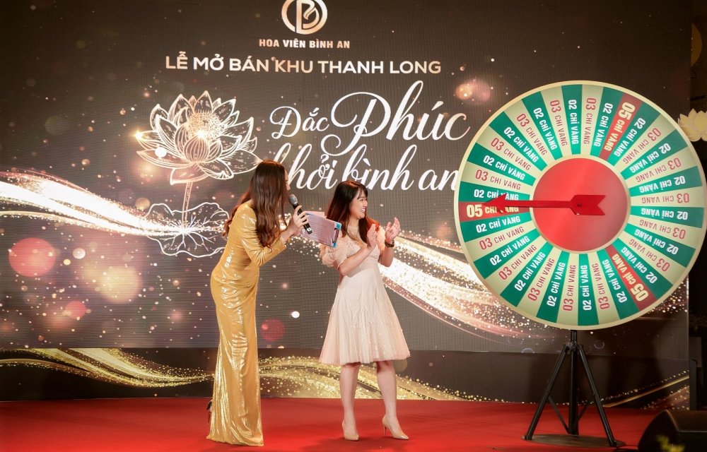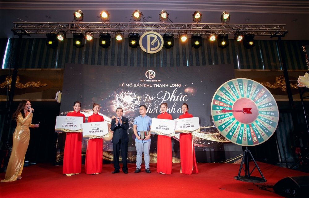 Hoa viên Bình An cũng công bố Dòng sản phẩm bất động sản độc đáo của Hoa viên Bình An là Khu nhà Từ Đường, Nhà thờ Tổ, Nhà thờ Họ và Lăng Gia Tộc đã thu hút hơn 300 khách hàng quan tâm và đặt cọc ngay tại sự kiện này. Đại diện Hoa viên Bình An chia sẻ: “Đây là dòng sản phẩm bất động sản lần đầu tiên có tại Hoa Viên Bình An. Vì giá trị văn hóa lớn lao và chương trình bán hàng đặc biệt của sản phẩm này, toàn bộ 100% sản phẩm Thanh Long Cát Tường mở bán trong đợt này đều được đặt mua hết ngay trong thời gian diễn ra sự kiện.” Trong sự kiện, Hoa viên Bình An cũng trao ngay hàng Trăm Lượng Vàng SJC 9999 và công bố giải thưởng trúng xe ô tô mới ra mắt Honda Brio cho những khách hàng may mắn. Đại diện Hoa viên Bình An chia sẻ đây là chương trình khuyến mãi lớn chưa từng có của dòng sản phẩm bất động sản độc đáo này. Nhằm đáp ứng nhu cầu tăng cao đột biến của khách hàng, Hoa Viên Bình An chính thức công bố mở thêm siêu phẩm Thanh Long Vượng Tộc – Vị trí đắc địa nhất với hàng loạt ưu đãi “khủng”.