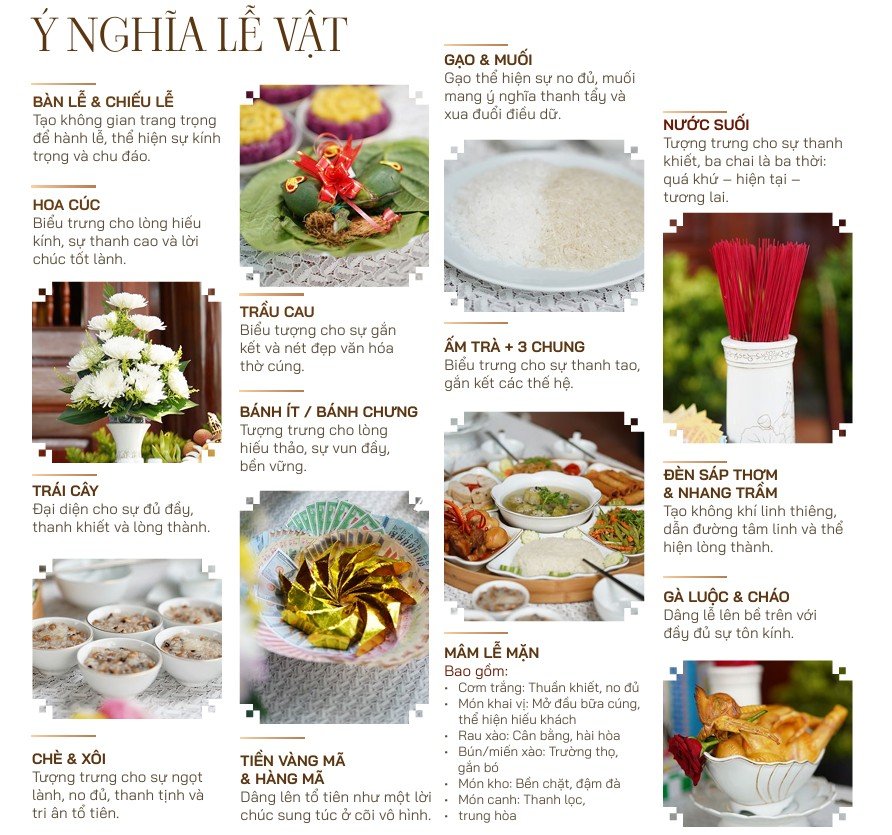 Trong truyền thống văn hóa Việt, lễ cúng giỗ là dịp quan trọng để tưởng nhớ người đã khuất, thể hiện đạo hiếu, sự tri ân và gắn kết của con cháu với tổ tiên. Đặc biệt, mâm lễ giỗ mặn mang tính biểu trưng cho bữa cơm sum vầy, chu đáo và đầy đủ, dâng lên ông bà, cha mẹ đã khuất. Việc chuẩn bị đúng và đủ nghi thức không chỉ là phong tục mà còn là cách thể hiện lòng thành sâu sắc của gia đình.