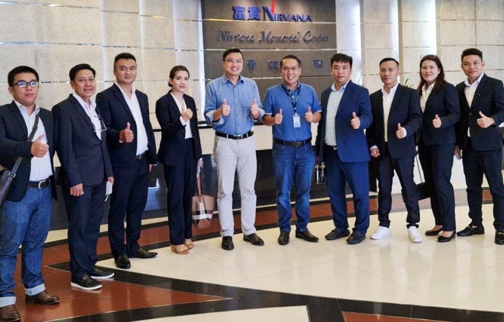 Tiếp đón đoàn tham quan của Hoa Viên Bình An, Mr Tan Hoang Han - Giám đốc nhân sự và đào tạo của tập đoàn Nirvana đã đích thân giới thiệu với đoàn công tác cơ sở vật chất cũng như các dịch vụ đang được trực tiếp khai thác tại hội sở chinh của tập đoàn Nirvana. Theo đó, tại hội sở chinh của tập đoàn Nirvana đang có 2 mảng kinh doanh chính đó là hộc lưu tro cốt và dịch vụ tổ chức tang lễ. Theo như vắn hoá người gốc Hoa tại Malaysia thì họ gần như không tổ chức tang lễ tại nhà mà sẽ lựa chọn địa điểm là các nhà tang lễ tương tự như hội sở của Nirvana. Nhà tang lễ tại hội sở chinh của tập đoàn Nirvana được mện danh là nhà tang lễ 6 sao với tất cả các dịch vụ cao cấp nhất của ngành nghề. Dịch vụ cao cấp nhất sẽ bao gồm “combo” trọn gói từ áo quan, trang phục cho người đã khuất, bàn ghế, hoa tươi trang trí lễ tang… với giá trọn gói từ khoảng 20.000 Ringit (tương đương khoảng 120 triệu VNĐ)