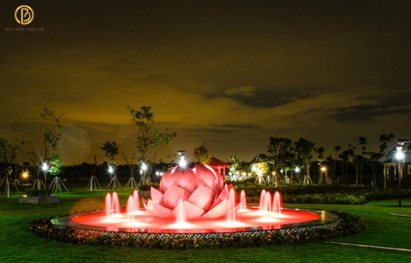 Bao quanh những công trình vĩ đại đó là cảnh sắc thiên nhiên tươi mát với rừng cây sala đầy quả mọng, vườn trăm hoa khoe sắc nở rộ. Thật không ngoa khi ví Hoa Viên Bình An như chốn bồng lai tiên cảnh, là nơi giao thoa hòa hợp giữa 2 thế giới âm dương. Giúp con cháu có một nơi để về tụ họp, tưởng nhớ về tổ tiên và cầu mong những điều tốt đẹp trong tương lai.