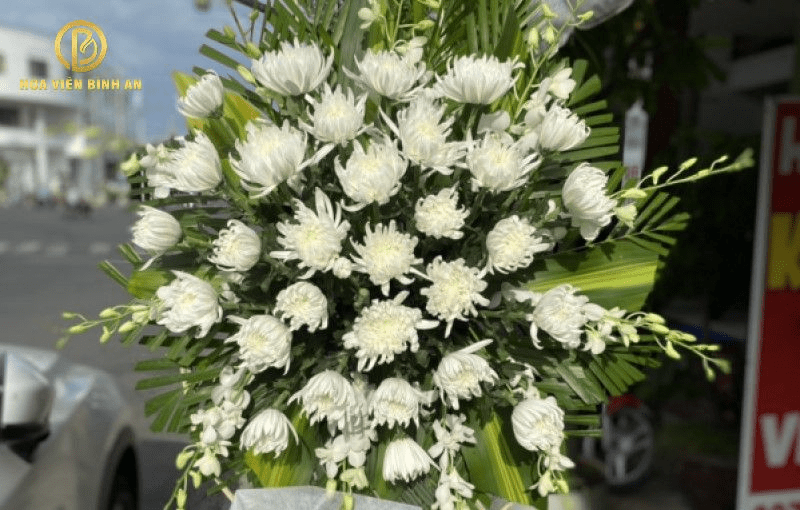 Ý nghĩa hoa cúc trắng trong đám tang rất sâu sắc thể hiện nỗi buồn và tiếc nuối về sự ra đi của người thân trong gia quyến. Đặc biệt, càng thương tiếc hơn khi người ra đi còn trẻ, còn nhiều điều dang dở phía trước. Hoa cúc trắng thường kết thành vòng hoa tang ba tầng để thay cho lời nhắn gửi thương tiếc đến gia đình.